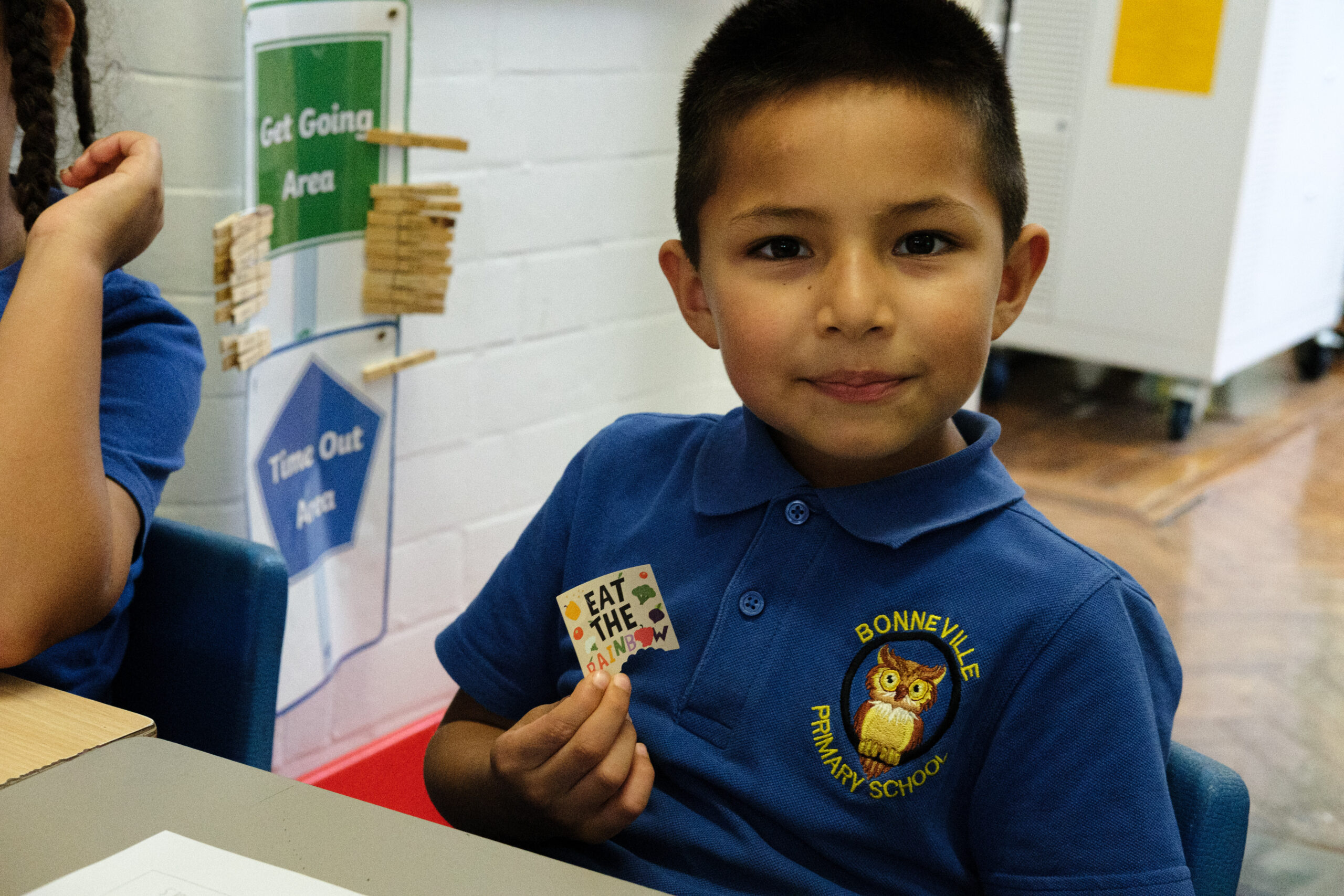 Participation sticker for every child to wear home.