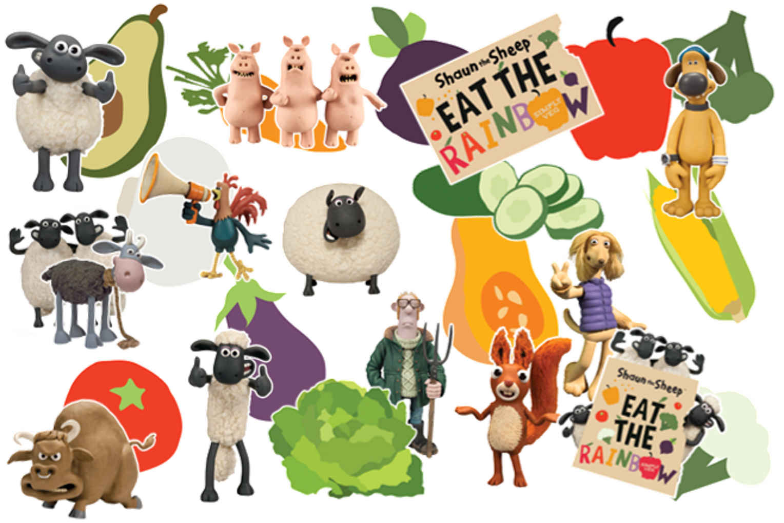 Venue decoration kits – a series of 25+ A4 cut outs of Shaun and friends and family favourite vegetables.
