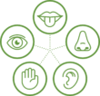 Try exploring whole sprouts and halved ones with your sense of sight, describing what you see. What do they remind you of? What colours and patterns can you see? Can you come up with an imaginative or funny description for them? If you can get hold of a “sprout stick” where they are still on the stalk (greengrocers and some supermarkets sell them in the winter), see what that reminds you of, too!
