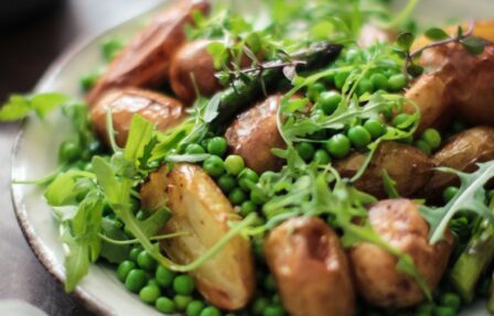 Niki’s Warm Asparagus, Roast New Potato and Pea Salad
