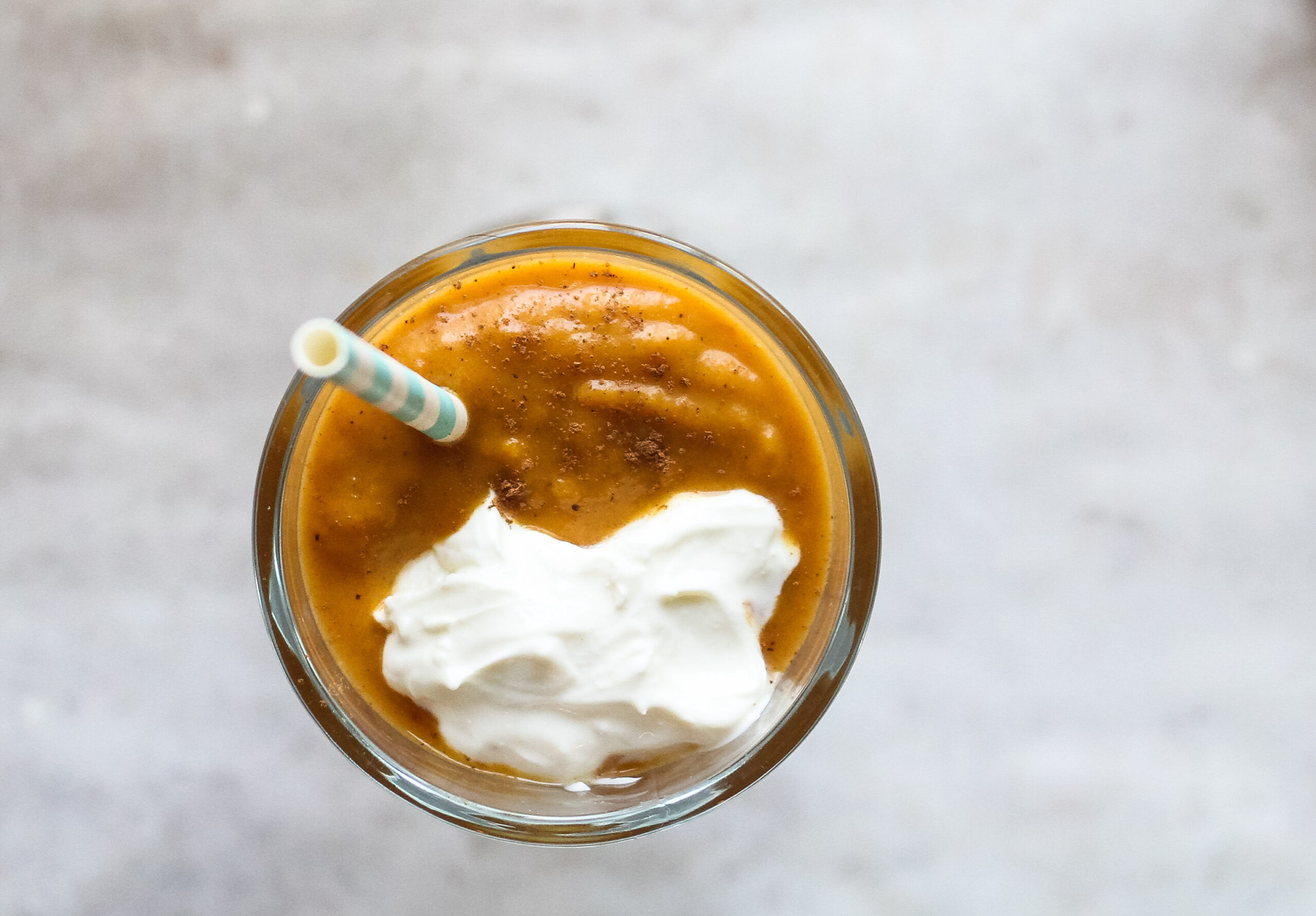 This 4-ingredient squash smoothie is super sweet and kid-friendly. Make a big batch of roasted pureed squash and freeze it in ice cube trays to have on hand to whip up this smoothie, our squash & chocolate muffins, or any recipe that calls for squash/pumpkin/sweet potato puree in no time!